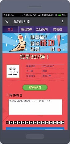 结合接力棒活动,运营活动并达到吸粉粉丝目的,活动按传棒个数进行排名。按排名进行奖品发放。