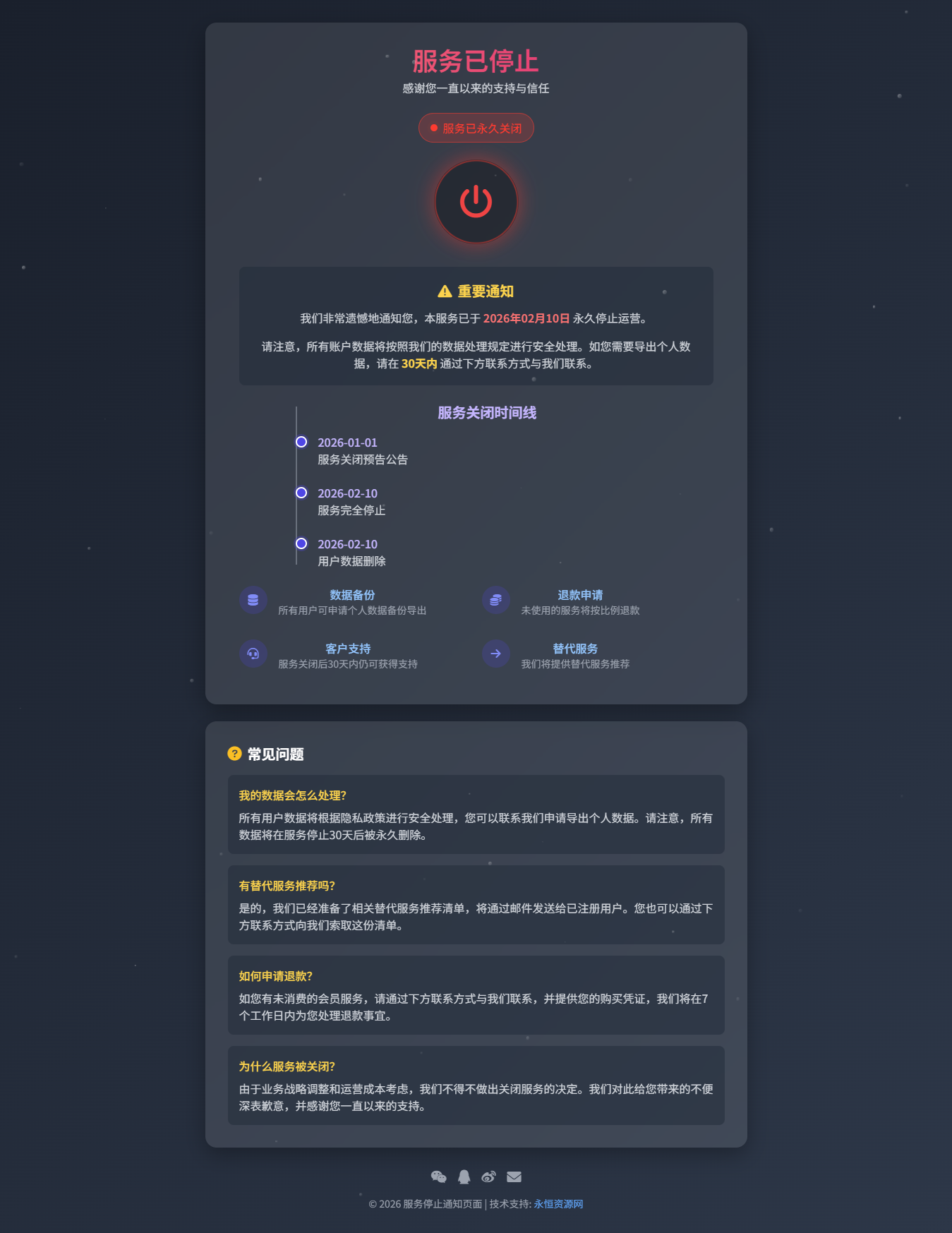 一个HTML单页网站停运源码,页面简洁美观,自适应手机和电脑端