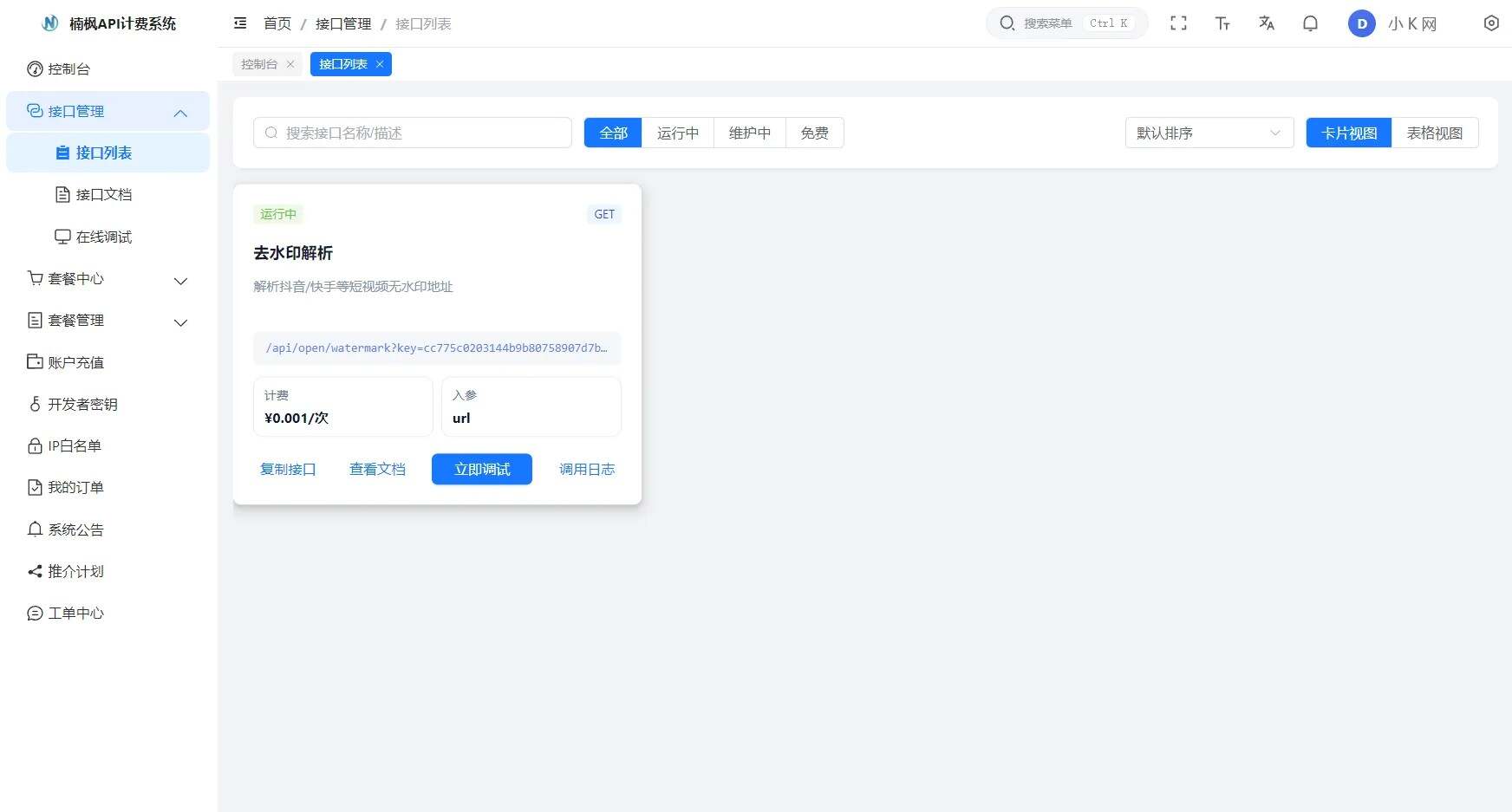 3、调用接口与计费,接口单独设置解析一次费用,例如0.01/次(计费顺序:会员->点数->余额)