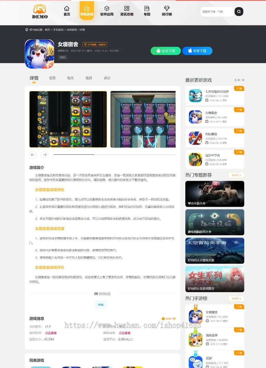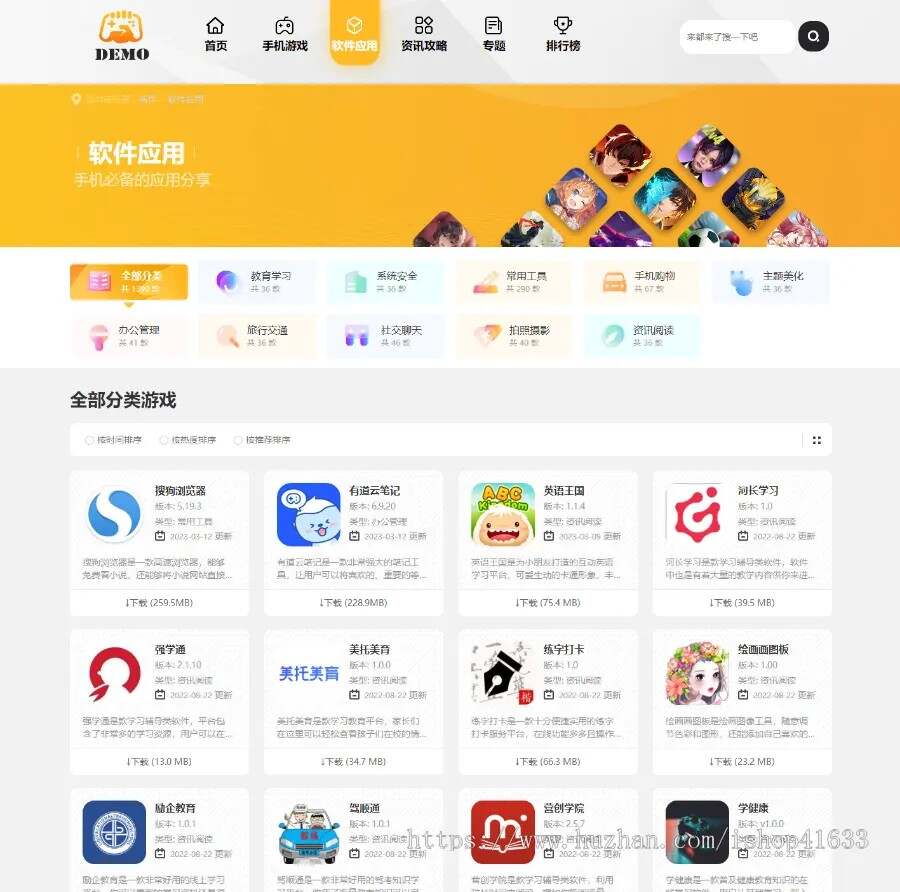 帝国cms7.5手游游戏应用软件APP下载站整站源码模板/百度推送/sitemap/同步生成