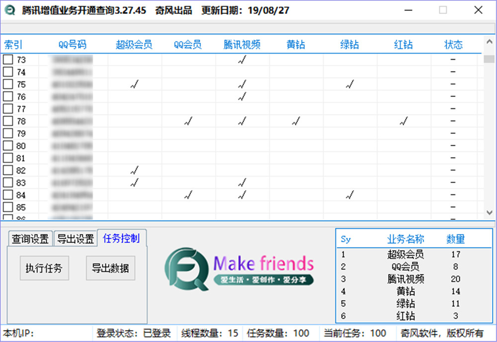 1、对导入的号码已开通业务进行cha询,只需登录一个小号;