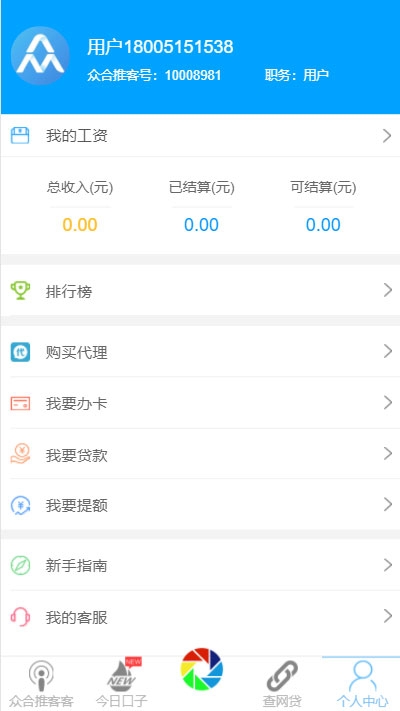 3、代理权限:今日口子、金融圈、分销店(后台可以设置代理权限)。