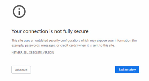 意味着,在2020年3月底,几乎所有的主流浏览器都将陆续禁止访问TLS 1.0/1.1的HTTPS网站 访问使用旧版协议的网站将会显示网页错误,这次改动,预计将有85万个站点受影响。