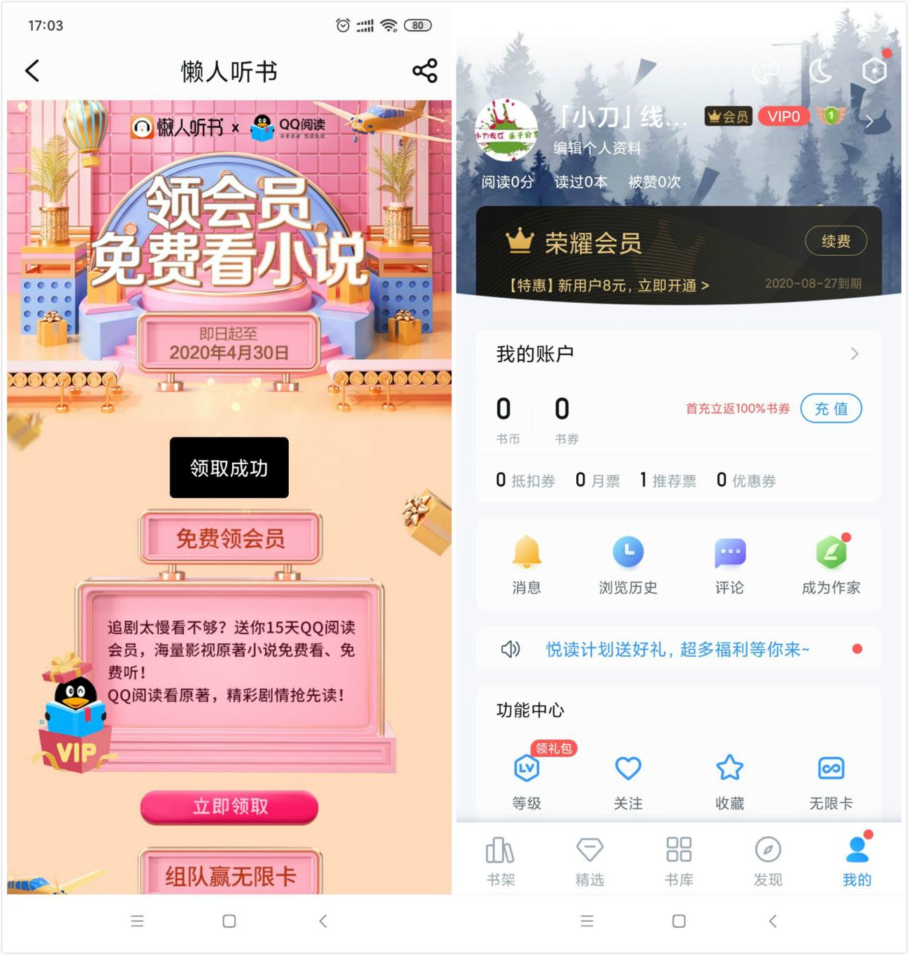扫码打开地址->点击立即领取->跳转到QQ阅读APP领取秒到