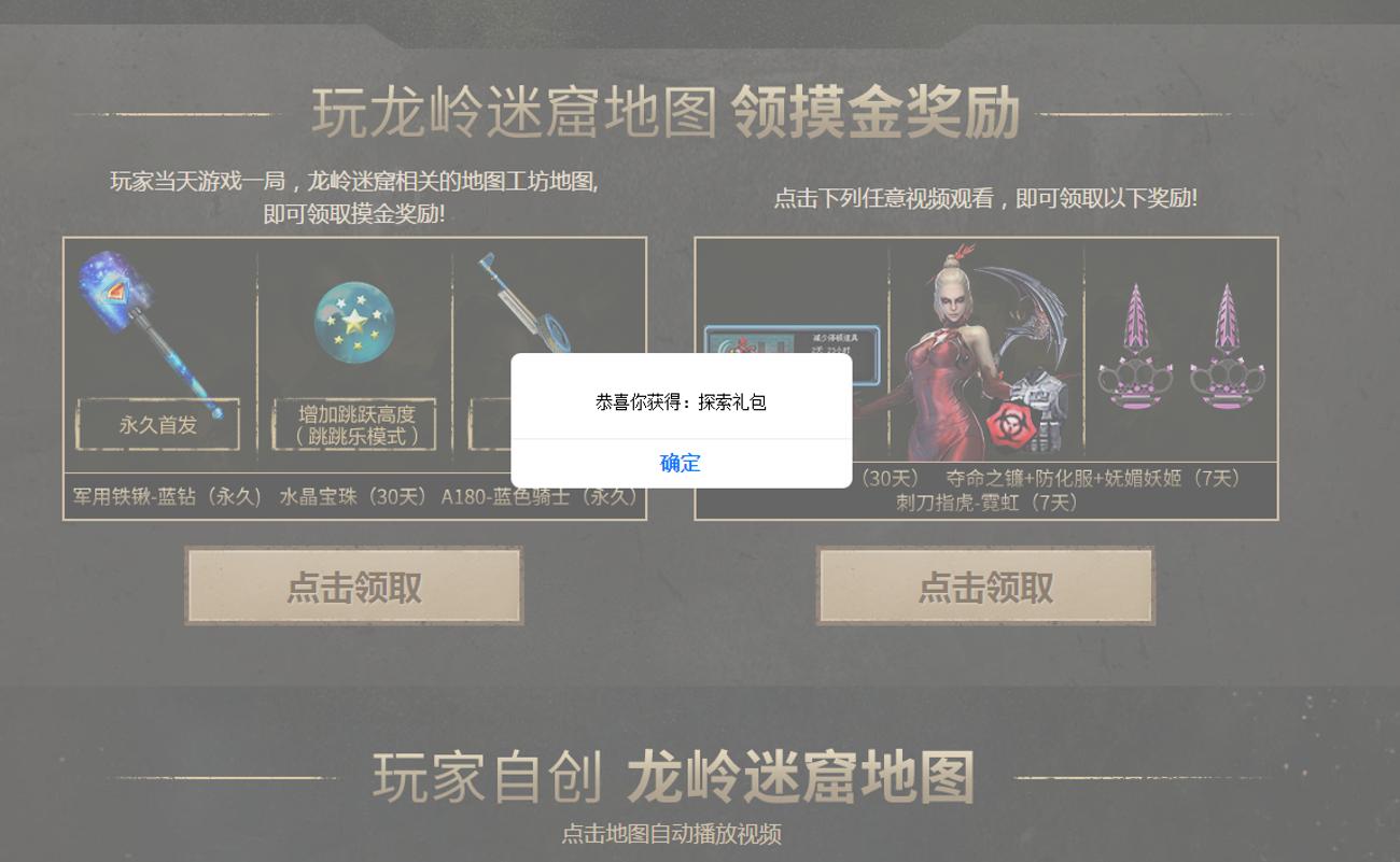当天游戏一局,龙岭迷窟相关的地图工坊地图,即可领取!