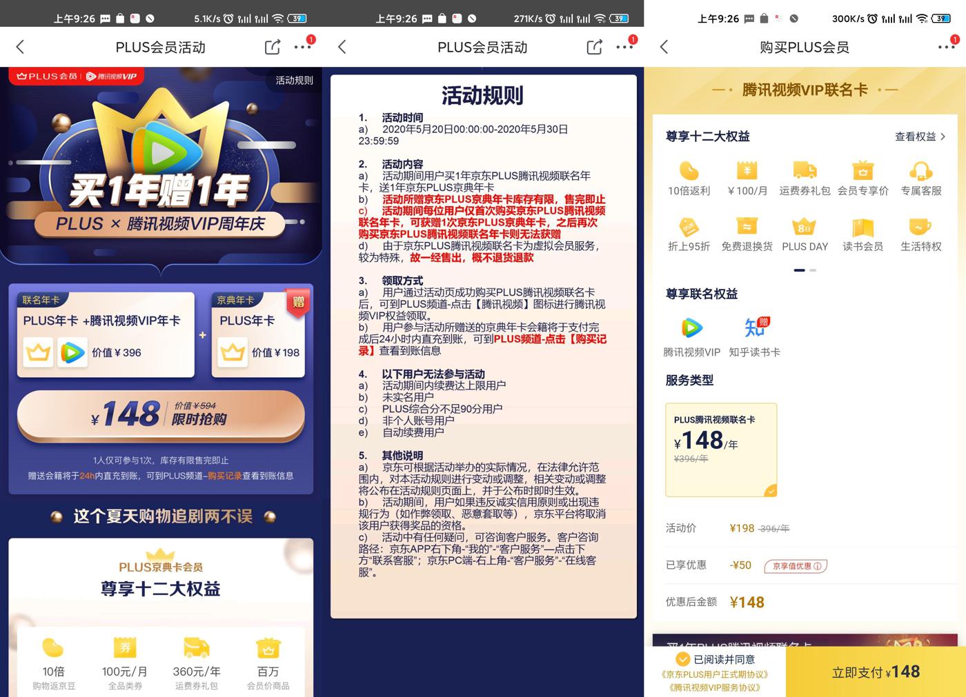 一年一度的京东Plus会员来了,开通还可以免费领1年知乎会员和京东读书会员,也就是148开了2年京东会员+1年腾讯视频会员+1年知乎会员+京东读书会员