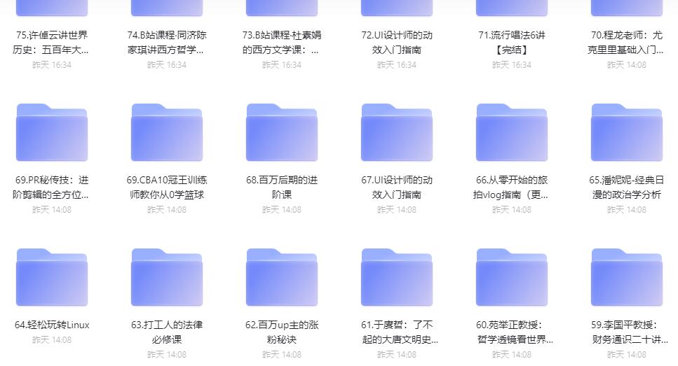 B站的课很多,总归有你需要的!目前一共大概是100+套,已上传60套+。