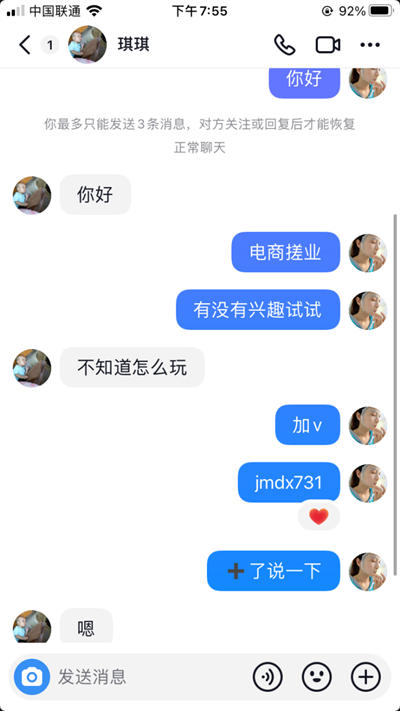 人员和账号及设备问题都搞定之后,剩下就是话术问题了,直接提供现成的话术给员工去操作就行了(话术一定要每隔一段时间优化迭代,不断提升转化率),直接私信相同领域博主的评论区最新评论的粉丝,比如对方求助一些情感的问题,那么这个粉丝就是相对精准的,直接私信吸引对方加到微信来。交给销售去转化成交就行了。