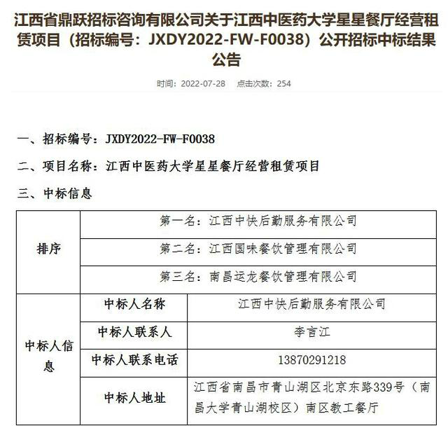 今天,一名此前任职于江西省教育厅学校后勤与产业办公室,目前仍在江西省教育厅下属事业单位工作的干部告诉东方网·纵相新闻,江西工业职业技术学院“61”食品安全事件涉事餐饮企业为江西中快后勤服务有限公司,“现在学校已经和他们解约了。”此外,东方网·纵相新闻今天向多家食堂也由江西中快后勤服务有限公司经营的高校后勤管理部门确认,尽管江西中快经营的食堂发生了学生吃到鼠头一事,但这几家高校均表示根据合同约定,目前食堂仍有江西中快经营,且学校非常重视食堂餐饮安全,加大了检查力度。公开资料显示,2022年江西中西药大学星星餐厅经营租赁项目中标人为江西中快后勤服务有限公司。