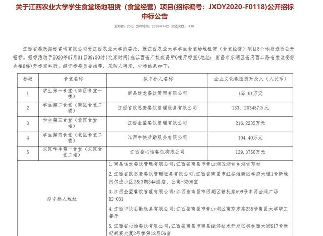 6月17日,全民关注的“鼠头鸭脖”一事终有盖棺定论,相关涉事企业究竟是谁仍是未解之谜。今天(6月19日),东方网·纵相新闻从江西省教育厅相关部门与江西省多家高校后勤管理部门等多方交叉印证确认,涉事食堂供应商为江西中快后勤服务有限公司,目前该涉事学校江西工业职业技术学院已与该公司解约。记者多方采访确认涉事企业为“江西中快”根据江西工业职业技术学院公开招标信息显示,本次涉事的瑶湖校区食堂中标供应商分别为江西中快后勤服务有限公司与江西金盟餐饮管理有限公司。两家企业分别经营涉事校区的第一食堂与第二食堂。