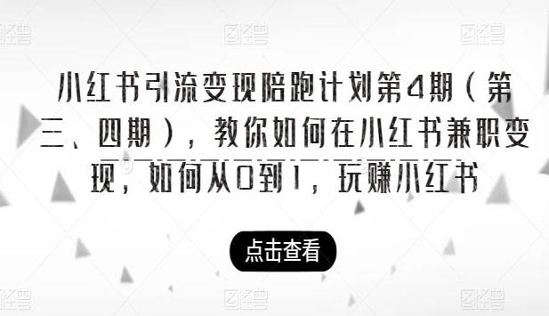 小红书引流变现陪跑计划|第4期(第三、四期),教你如何在小红书兼职变现,如何从0到1,玩赚小红书