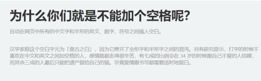 对于一些对电脑标点非常敏感,且有“强迫症”的人来说,全角、半角、英文符号、中文符号基本都能很快识别出来,如果细看,总感觉怪怪的。 空格之神这款插件可以在中文字和半形的英文、数字、符号之间插入空白,使间距统一,让人看起来更加舒服。