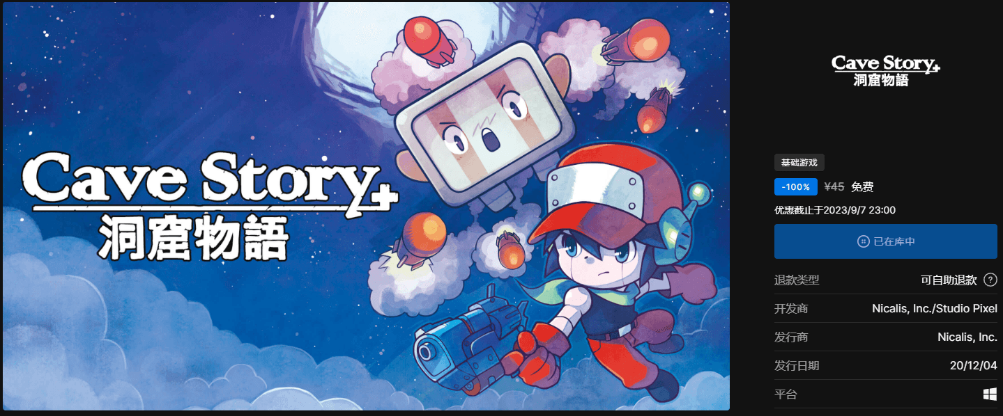 领取地址:https://store.epicgames.com/zh-CN/p/cave-story-plus