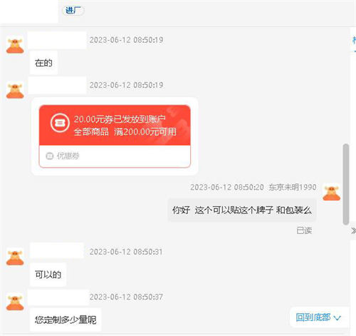 问了一家是否可以贴天猫上200块钱左右一样的牌子,ta说可以。