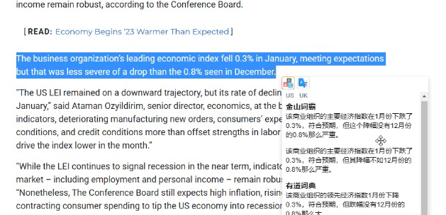 有道词典、金山词典、Bing词典等接口,直接划词后点击一下翻译图标就能翻译,同时会给出多个结果,无需担心翻译存在偏差~