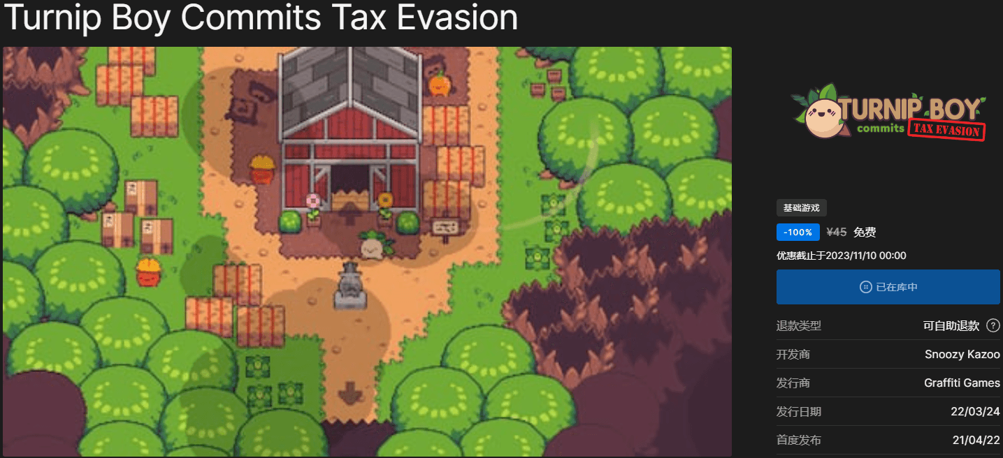 领取地址:https://store.epicgames.com/zh-CN/p/turnip-boy-commits-tax-evasion-fb2084