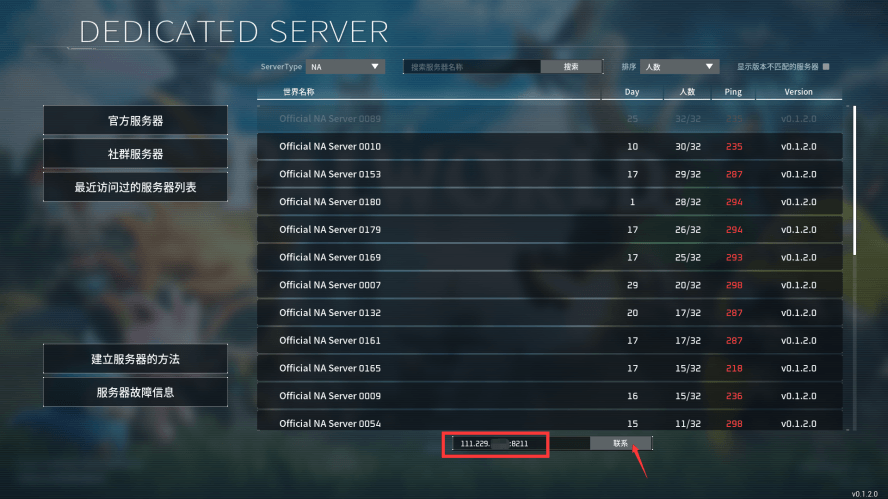 2. 将最下方的 127.0.0.1 这个地址换成上面最后一步里“幻兽帕鲁服务器地址端口”的IP地址,就可以跟小伙伴们愉快地联机游戏了。