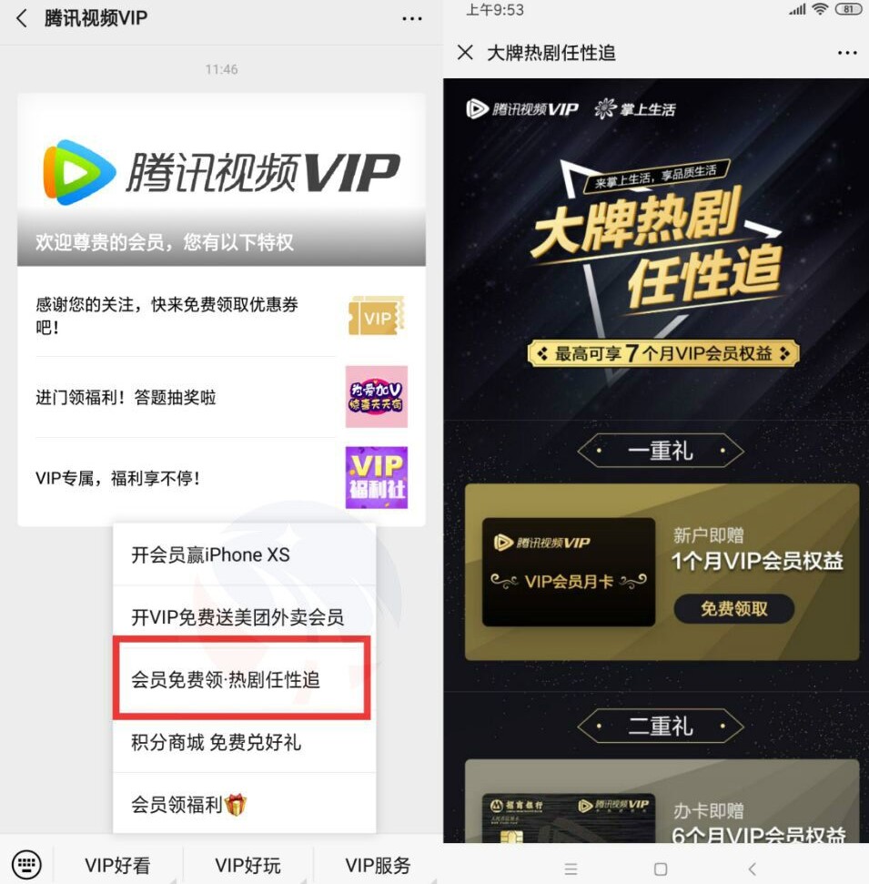 菜单栏“VIP好玩”->会员免费领->需掌上生活新用户!