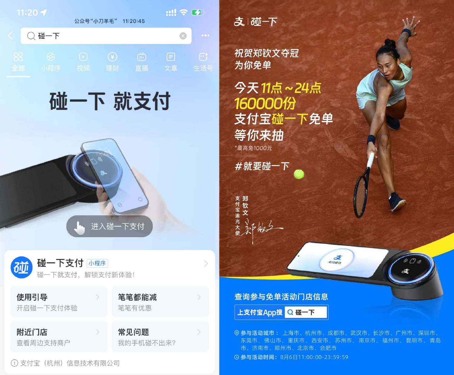 支付宝搜索“碰一下”->今天11~24点用支付宝碰一下支付,随机抽16万份免单 最高免1000亓