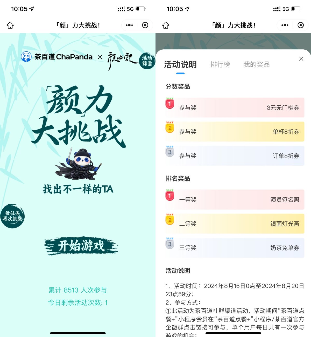 微信打开活动->简单游戏得分数,8月20日活动结束后 排行榜前1000名可得奶茶免单券
