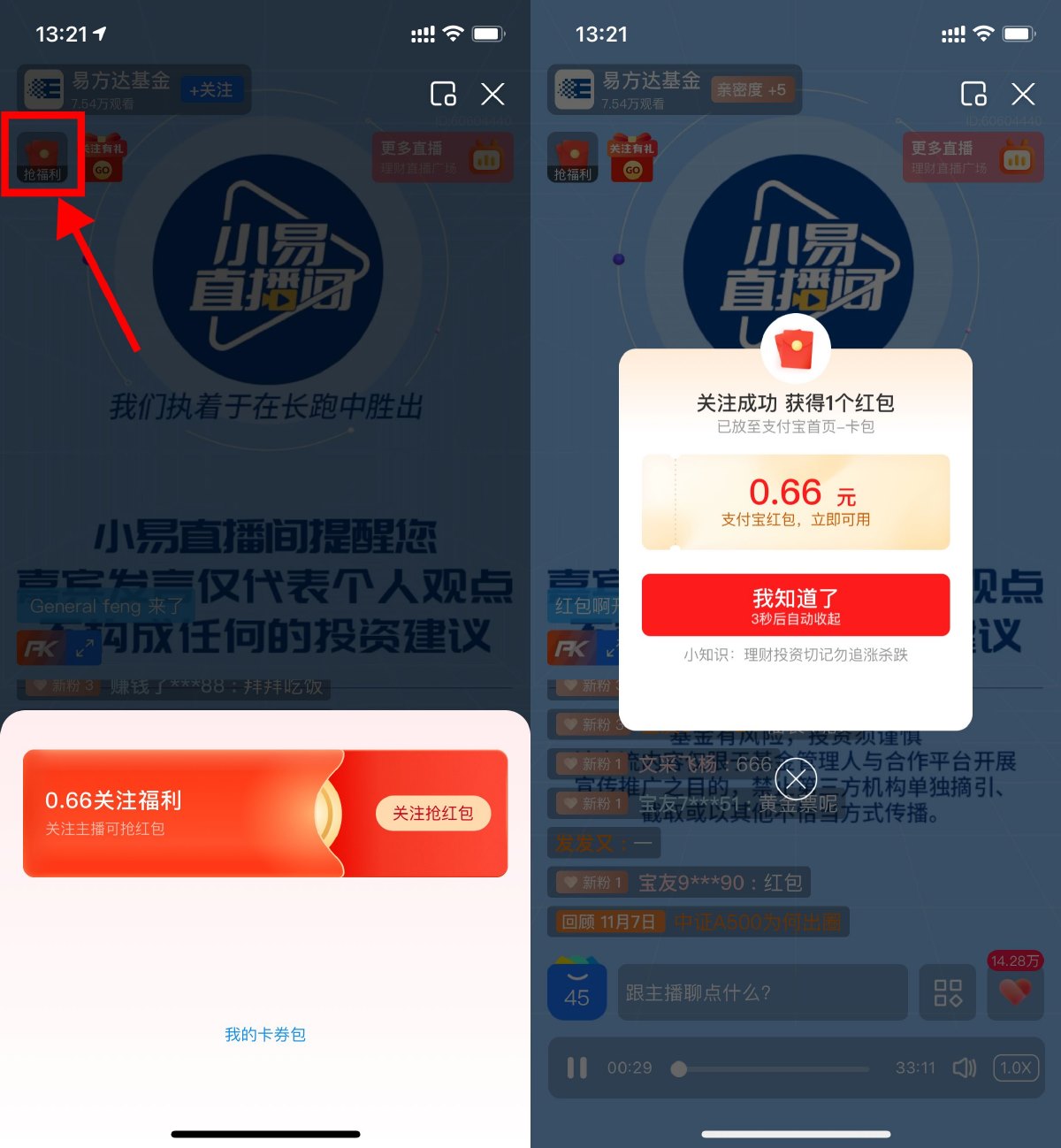 支付宝APP扫码->点左上角关注,有0.66亓通用消费红包